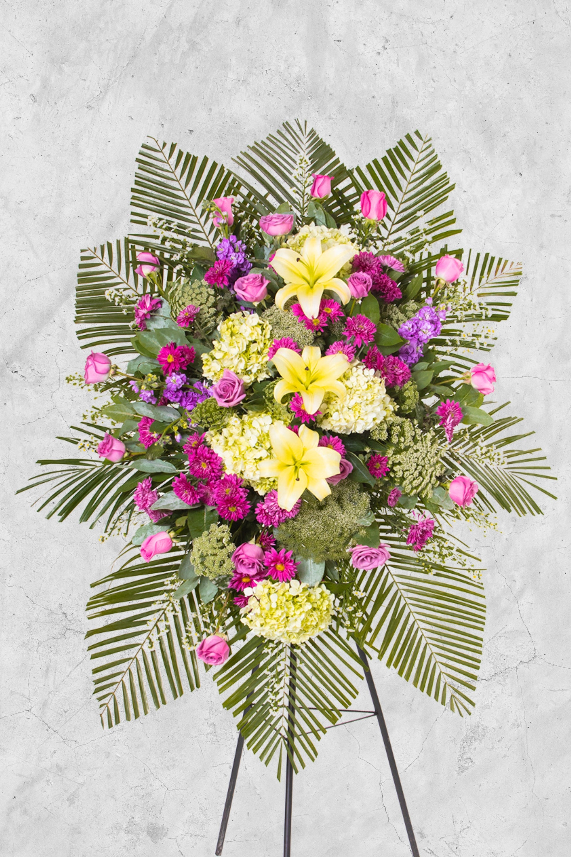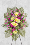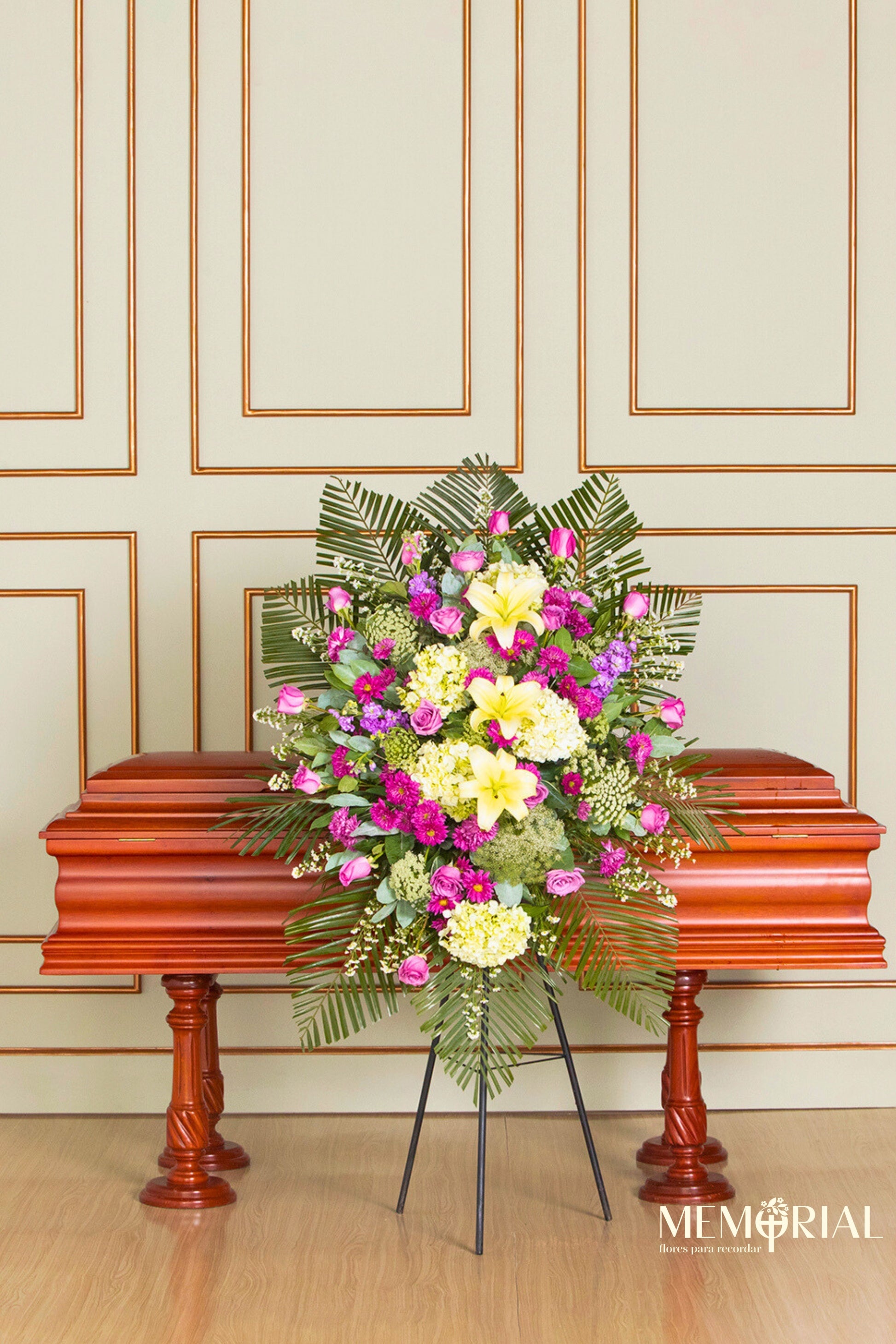 Este arreglo en pie es recomendado para quienes desean acompañar de forma visible y digna, un tributo alto y elegante.
