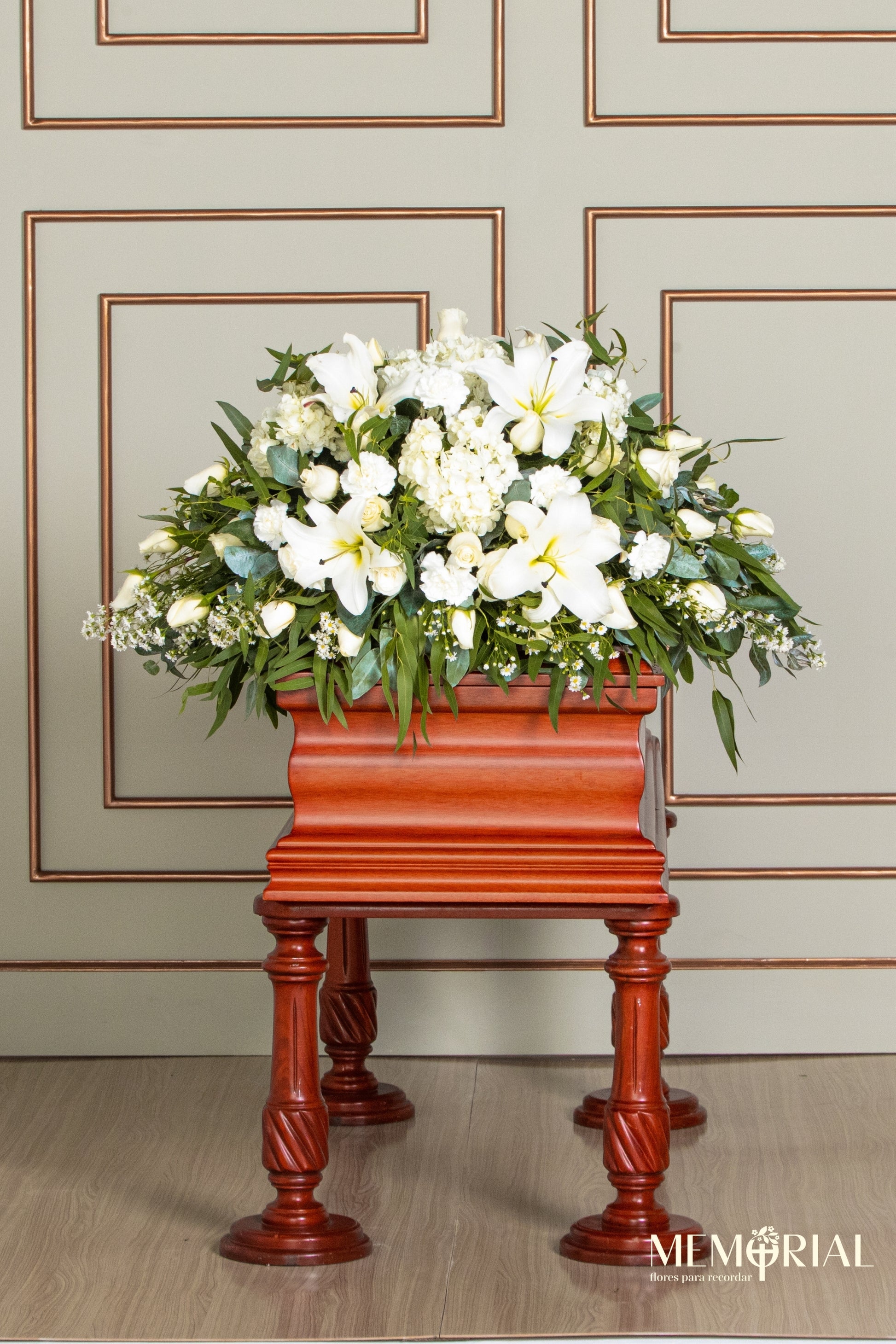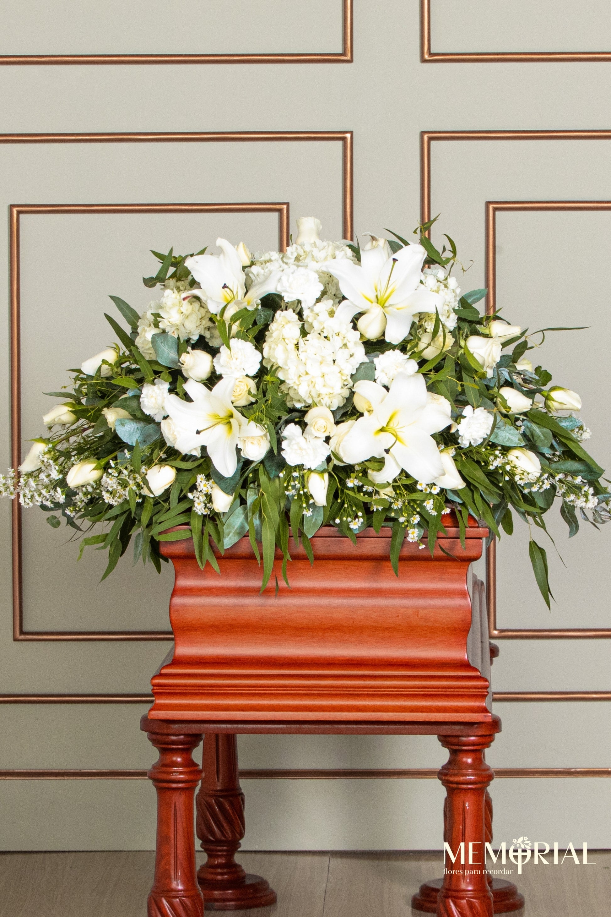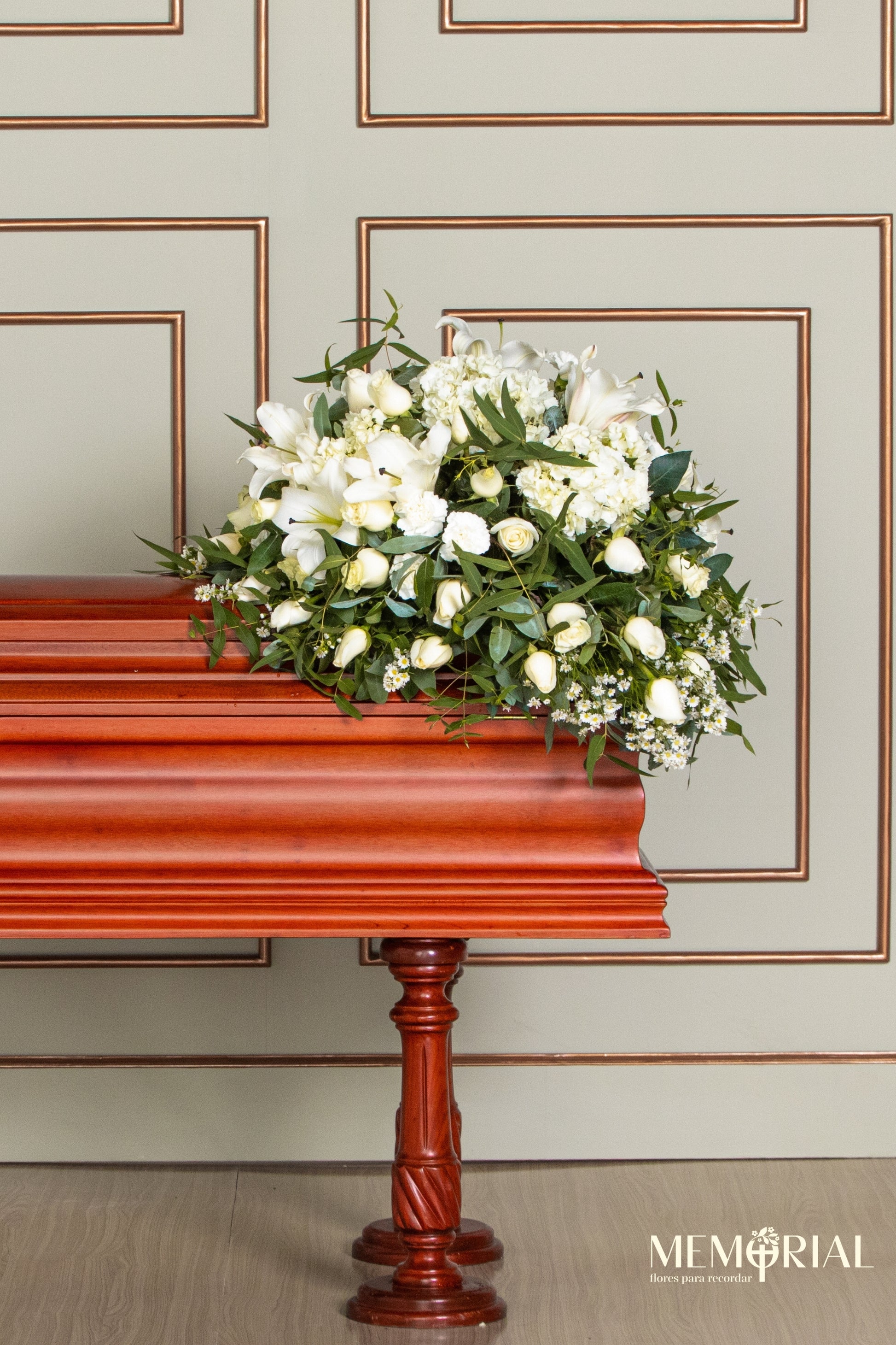 Este arreglo es perfecto para expresar un último gesto de amor y cercanía, ideal para ceremonias de despedida solemnes.