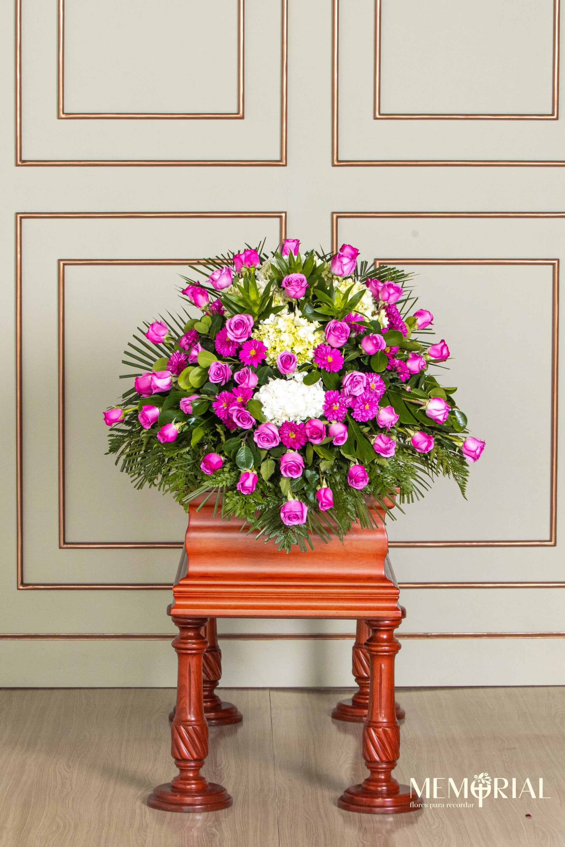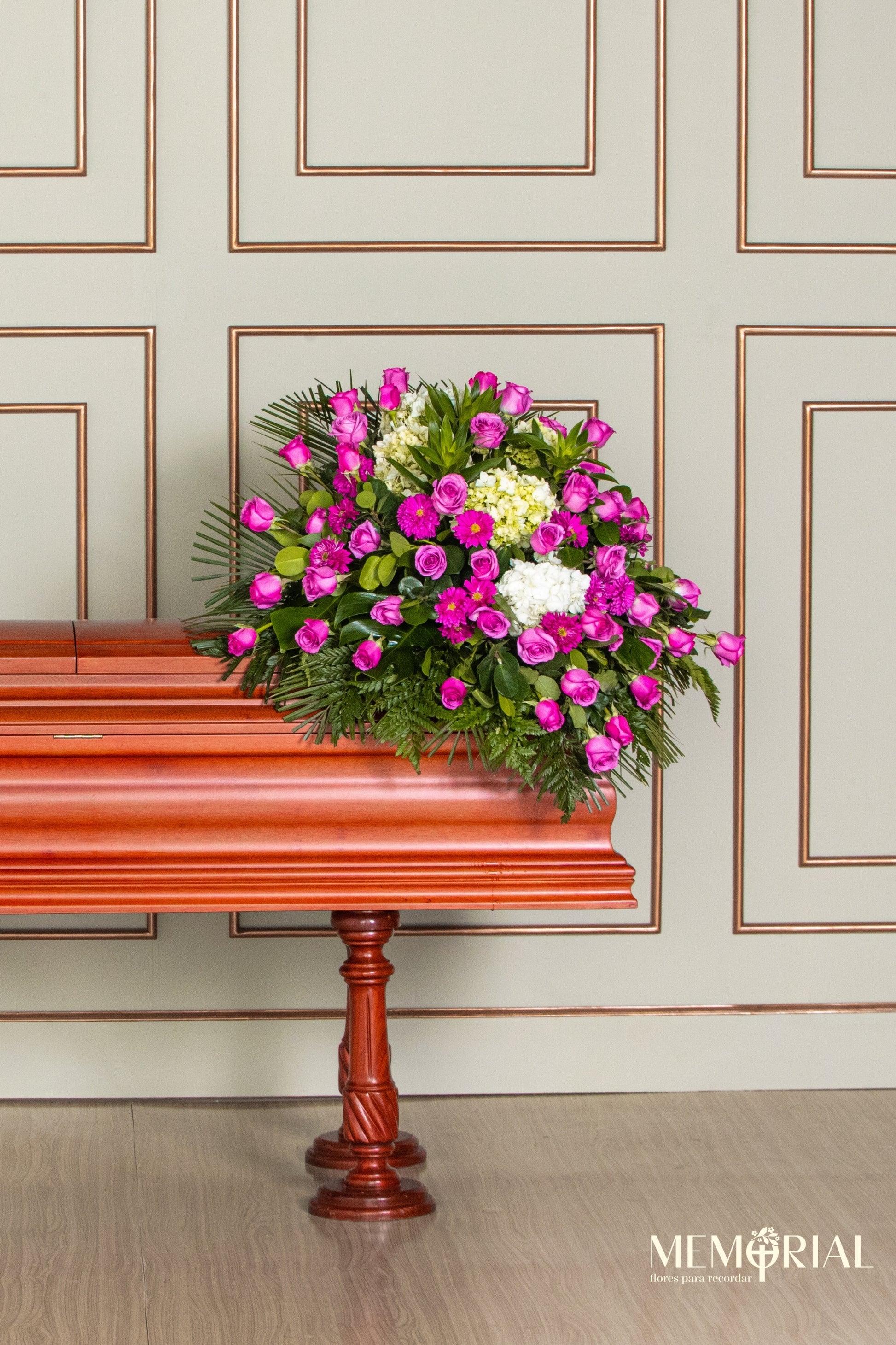 Este manto de condolencias en Lima es ideal para expresar respeto y serenidad. Diseñado para cubrir el ataúd, transmite paz y un último gesto de amor.