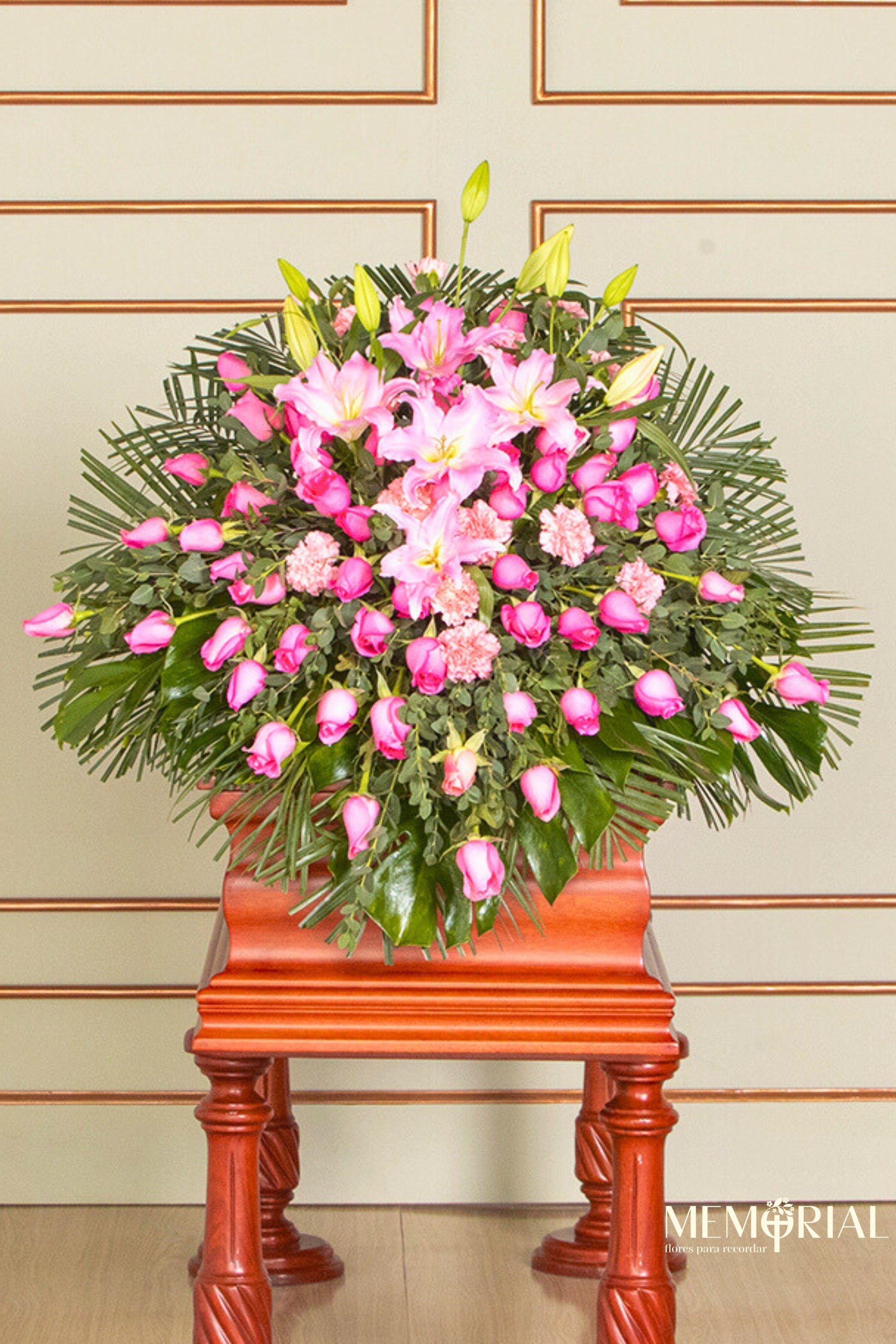 Manto de Condolencias con Rosas Rosadas y Liliums