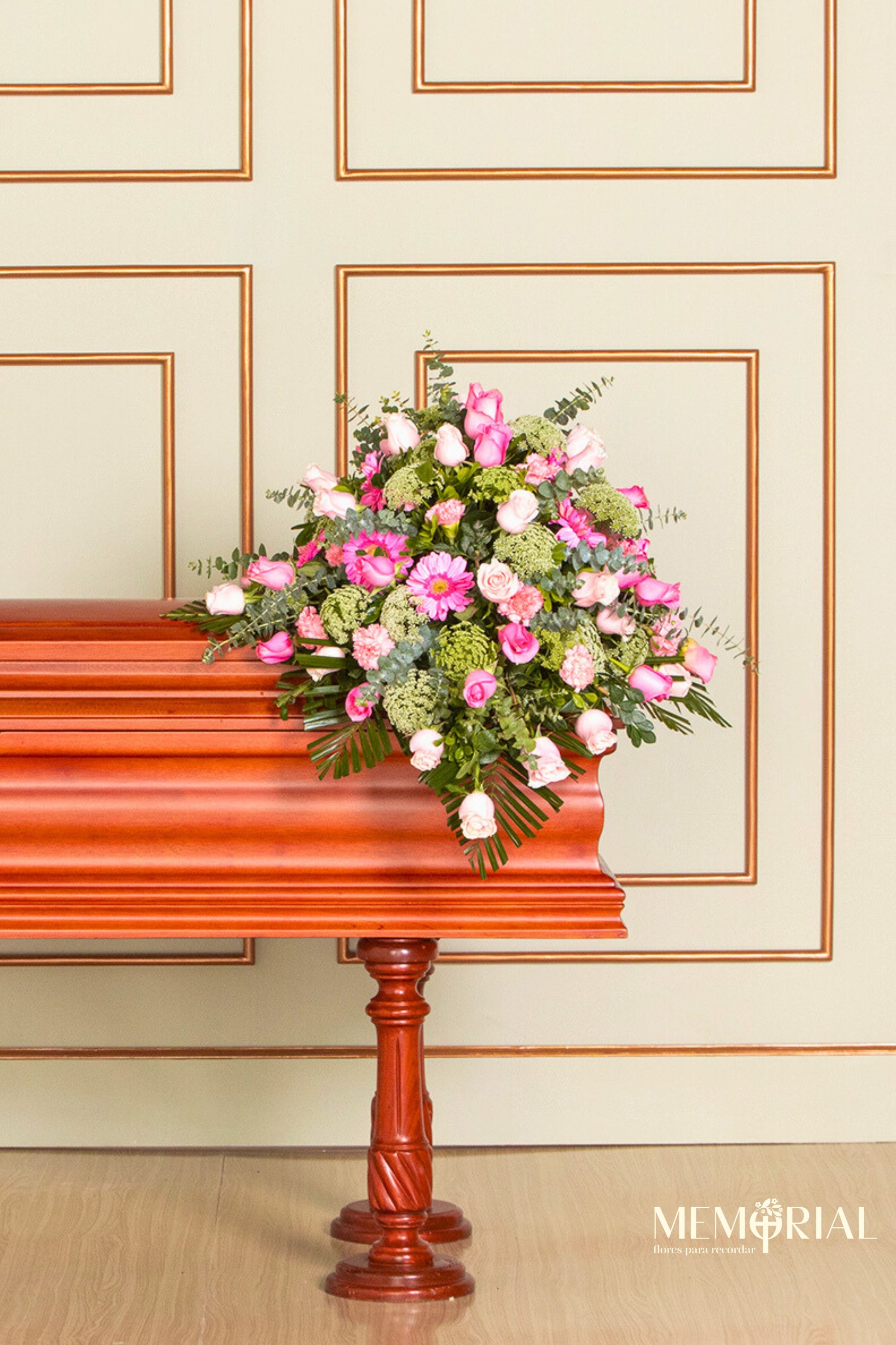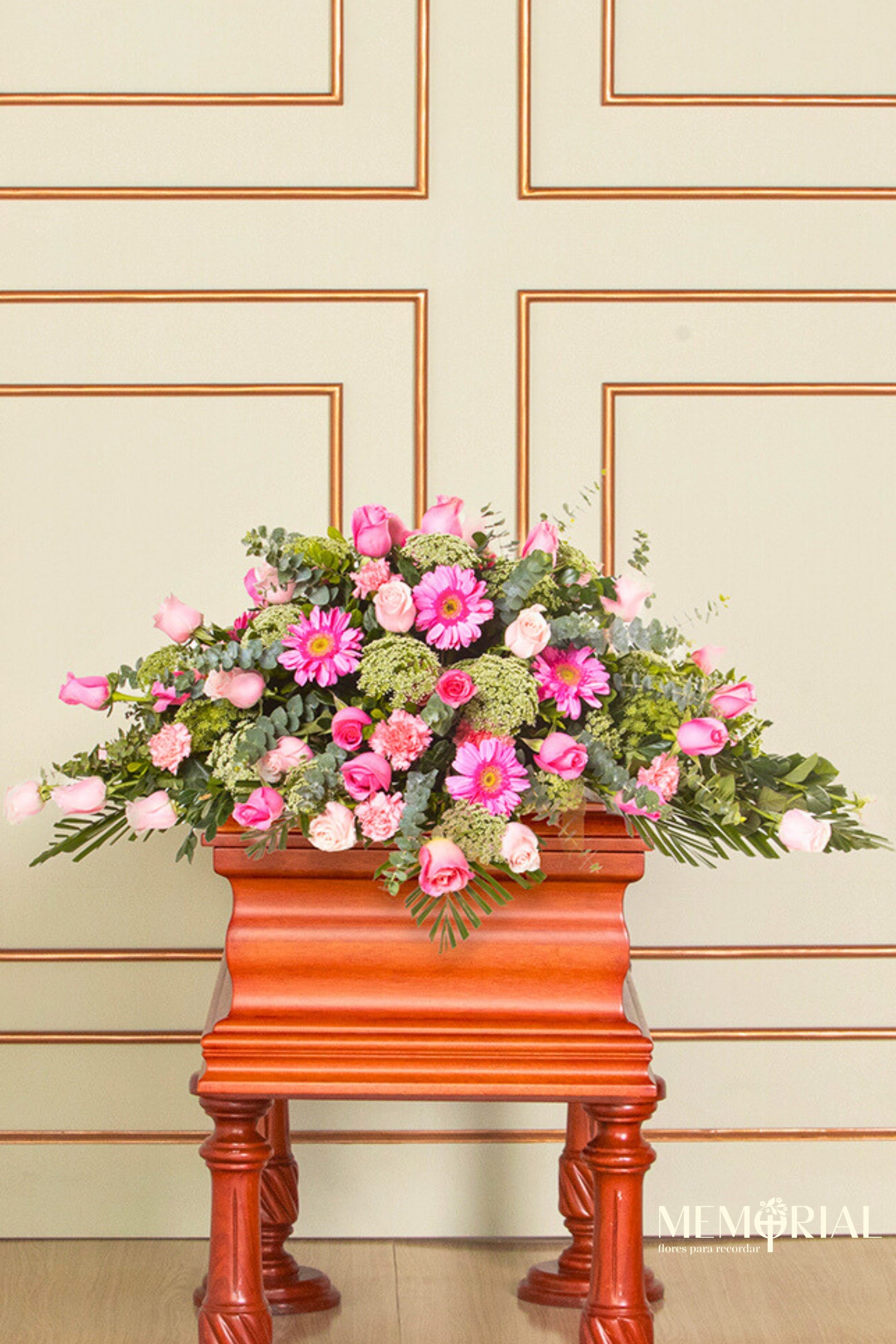 El Manto de Condolencias con Rosas Rosadas y Titanic es un tributo floral elegante y lleno de cariño, diseñado para cubrir el cajón en el último adiós. Este manto incluye 35 rosas rosadas, 35 rosas Titanic, clavelón, gerberas y flores de complemento, creando un homenaje lleno de ternura y respeto.